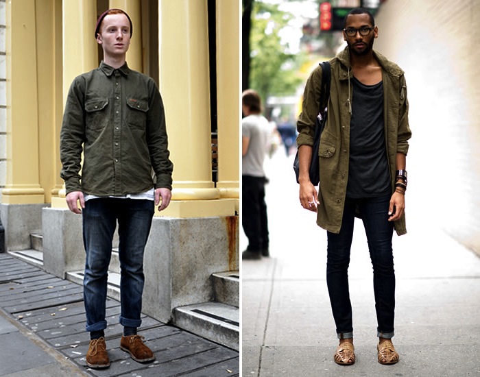 Photo 1: love how he cuffed the ends of his shirt over his jacket. Photo 2: great color scheme of an outfit |